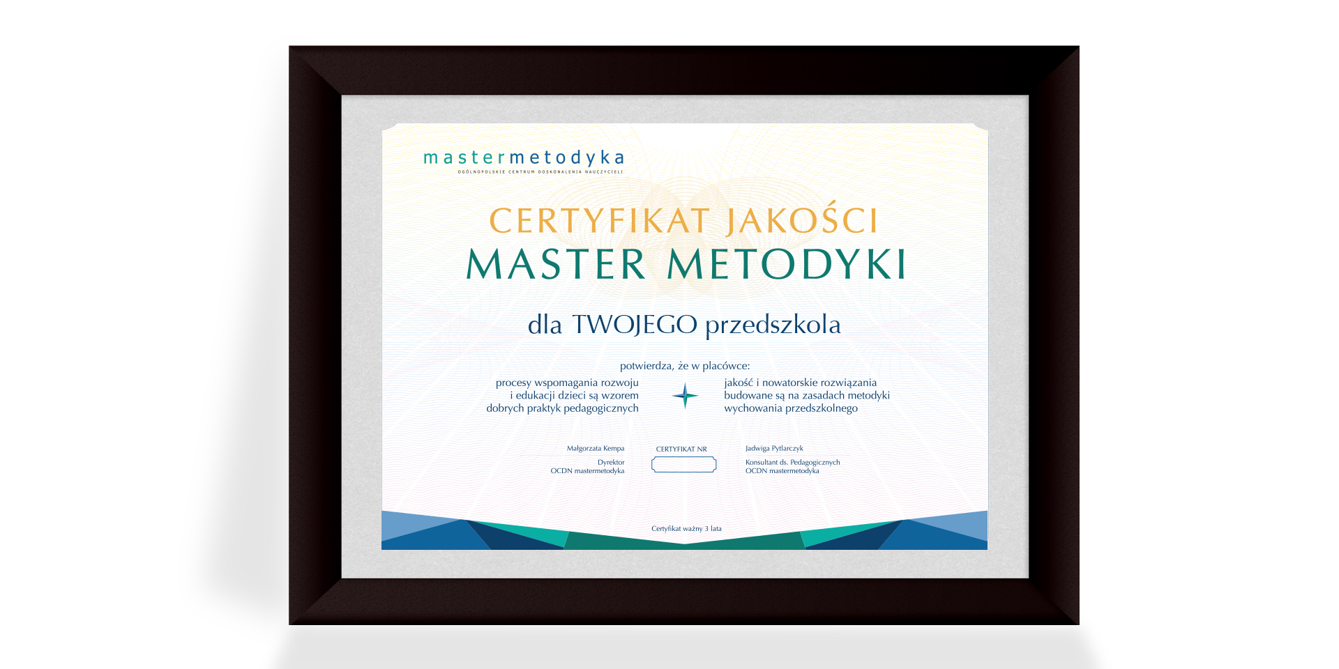 Certyfikat Jakości MASTER METODYKI to wyróżnienie i promocja przedszkoli, które są wzorem dobrych praktyk, a swoją jakość i nowatorskie rozwiązania budują na zasadach metodyki wychowania przedszkolnego.